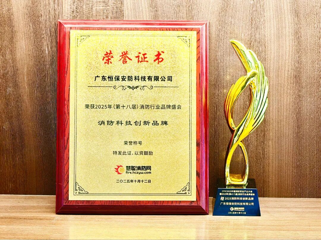 在消防行業創新浪潮與技術變革的關鍵節點,恒保公司憑借深厚的技術積累與前瞻性的研發布局,在眾多企業中脫穎而出,榮獲 “2025 消防科技創新品牌” 獎項。